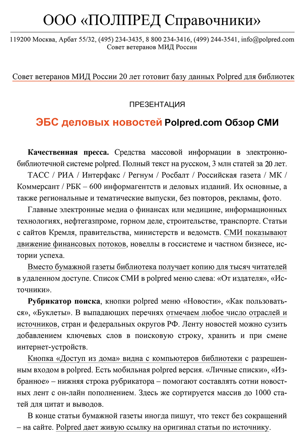 Библиотека с доступом к Polpred.com Обзор СМИ