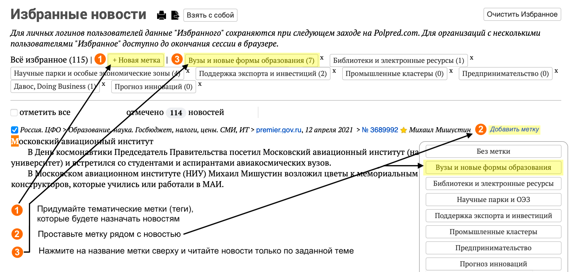 Детализация скачанных из polpred.com статей для авторизованных пользователей.